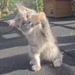 Ein kleiner, grau getigerter Streunerkater, unkastriert, krank, klapprig, verzweifelt. Und dazu kann er nicht richtig laufen. Er hat schwere Störungen in seinen Bewegungsabläufen.