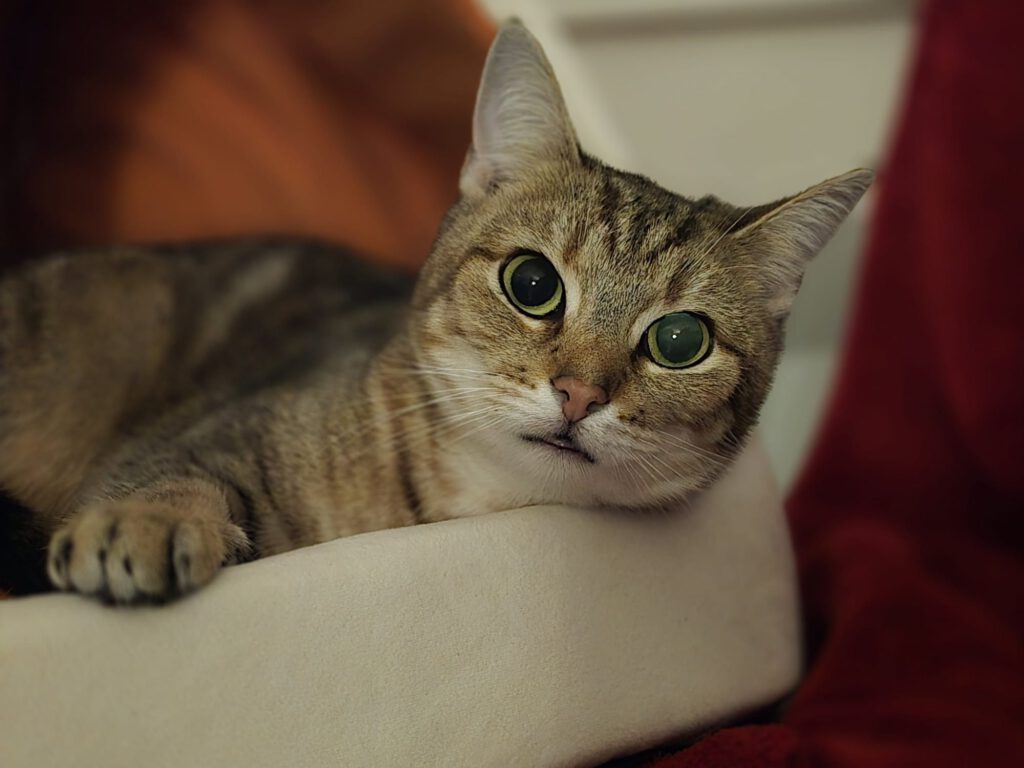 Mitten in diesem Chaos aus Müll, Verzweiflung und vollgepisster Matratzen saß eine kleine Katzenmaus mit schiefem Köpfchen und einem Blick, der direkt ins Herz ging. Wums! Als hätte Armor uns direkt seinen Fall ins Herz geschossen…