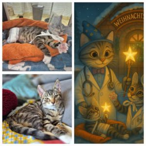„Der Kater, der mit Raketenschub ein neues Leben bekam.“ In der zehnten Nacht der Weihnachtsklinik wurde ein Kater gebracht, der...