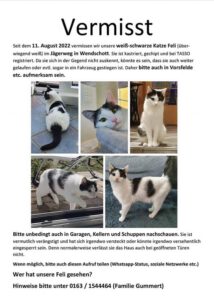 Unsere ehemalige Unfallkatze Feli wird in Wolfsburg-Wendschott vermisst. Ihr erinnert euch vielleicht… Im Sommer 2021 hatte sie einen Autounfall in...