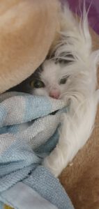 Der kleine 4 Wochen alte Kater sollte heute eingeschläfert werden. Er hat eine Fehlstellung beider Hintergliedmaße. Die Sprunggelenke sind nicht...