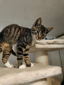 Yanni, ein etwa 12 Wochen alter, lieber grau-weiß getigerter Kater, der alles ganz genau beobachtet. Er mag gerne Leckerlis. Bei...
