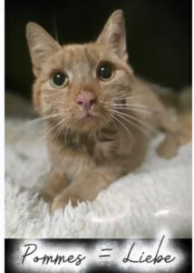 Ich bin Pommes. Bitte hilf mir, damit ich wieder laufen kann. Ich bin Pommes, ein kleiner, süssli roter Kater. Mein...